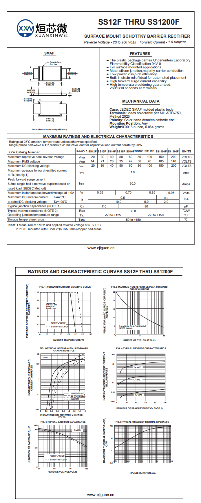 Maximum instantaneous forward voltage at 1.0A VF 1.0A時的最大瞬時正向電壓:0.55V